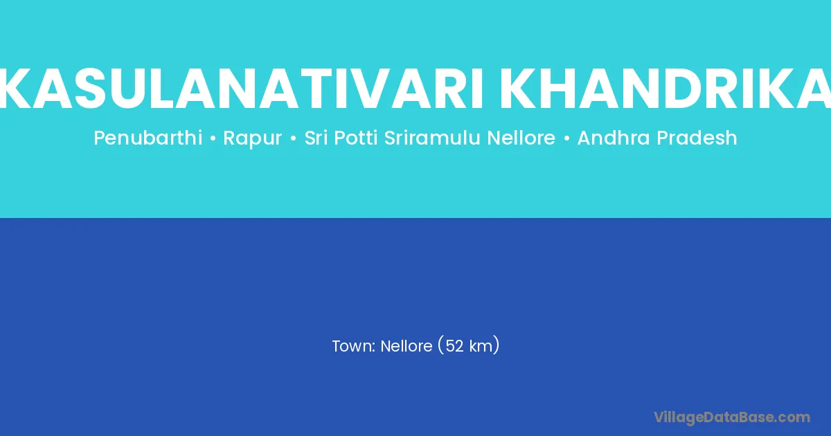 Nellore (52 km) is the nearest town to Kasulanativari Khandrika village for major economic activities and is located approximately 52 km away.