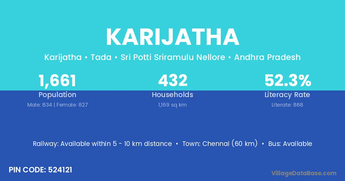 According to Census 2011 information, the village code of Karijatha village is 524121.