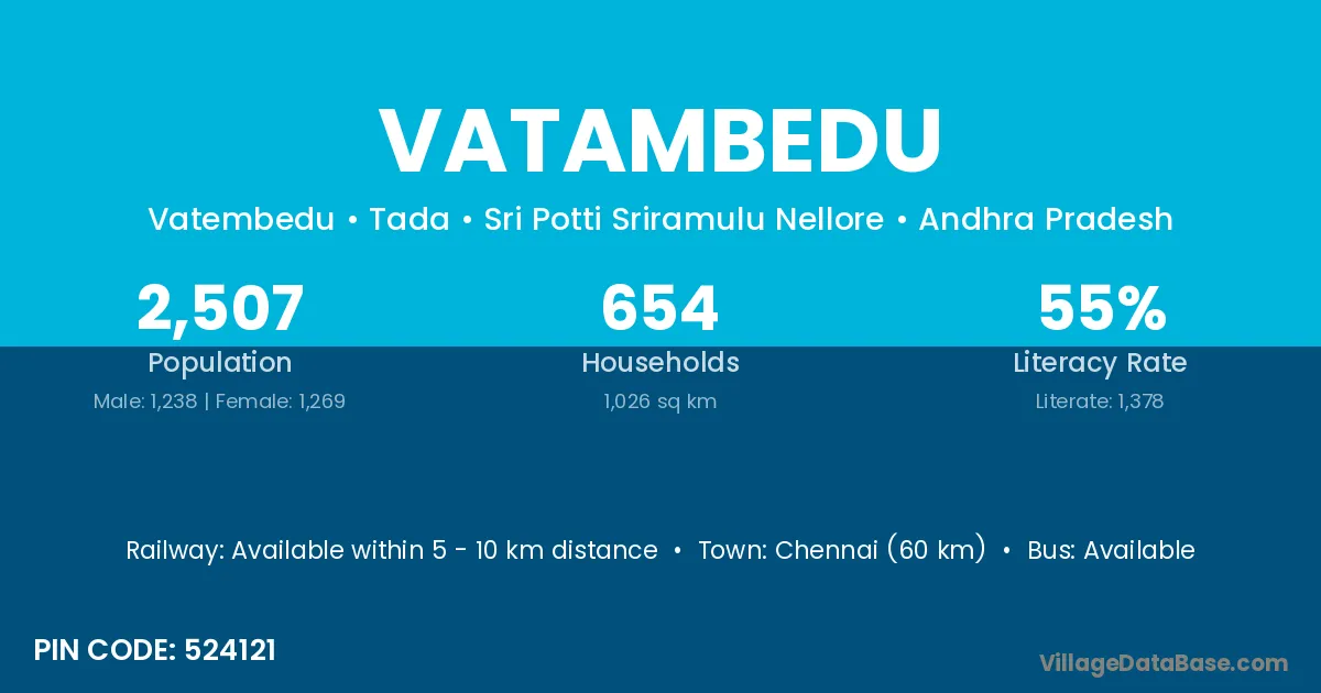 Chennai (60 km) is the nearest town to Vatambedu village for major economic activities and is located approximately 60 km away.