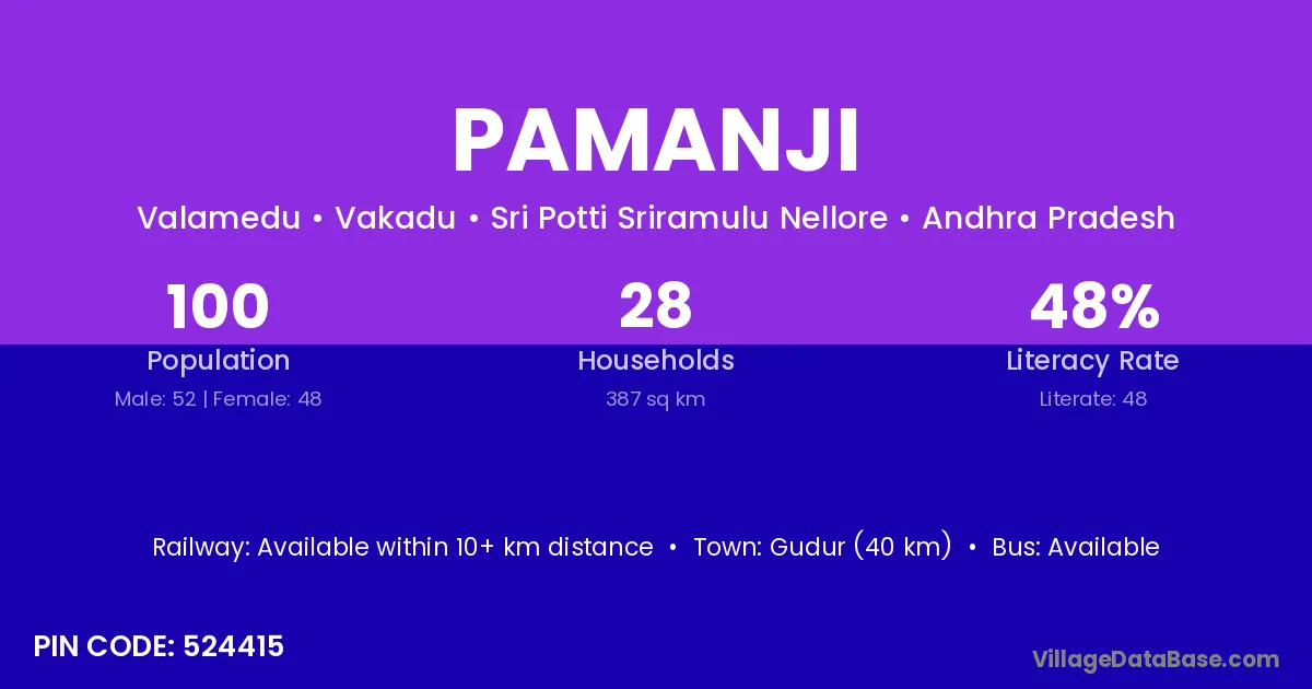 Gudur (40 km) is the nearest town to Pamanji village for major economic activities and is located approximately 40 km away.