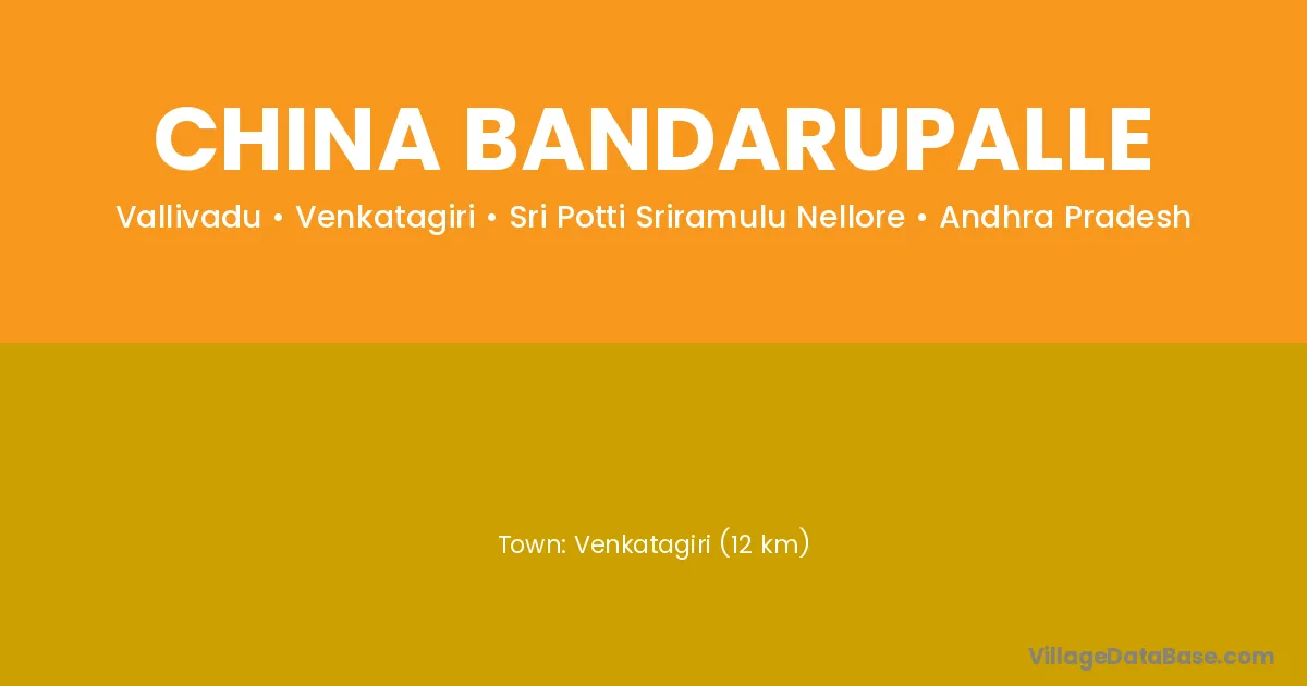 Venkatagiri (12 km) is the nearest town to China Bandarupalle village for major economic activities and is located approximately 12 km away.