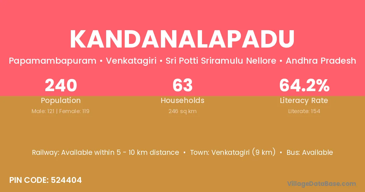 Venkatagiri (9 km) is the nearest town to Kandanalapadu village for major economic activities and is located approximately 9 km away.