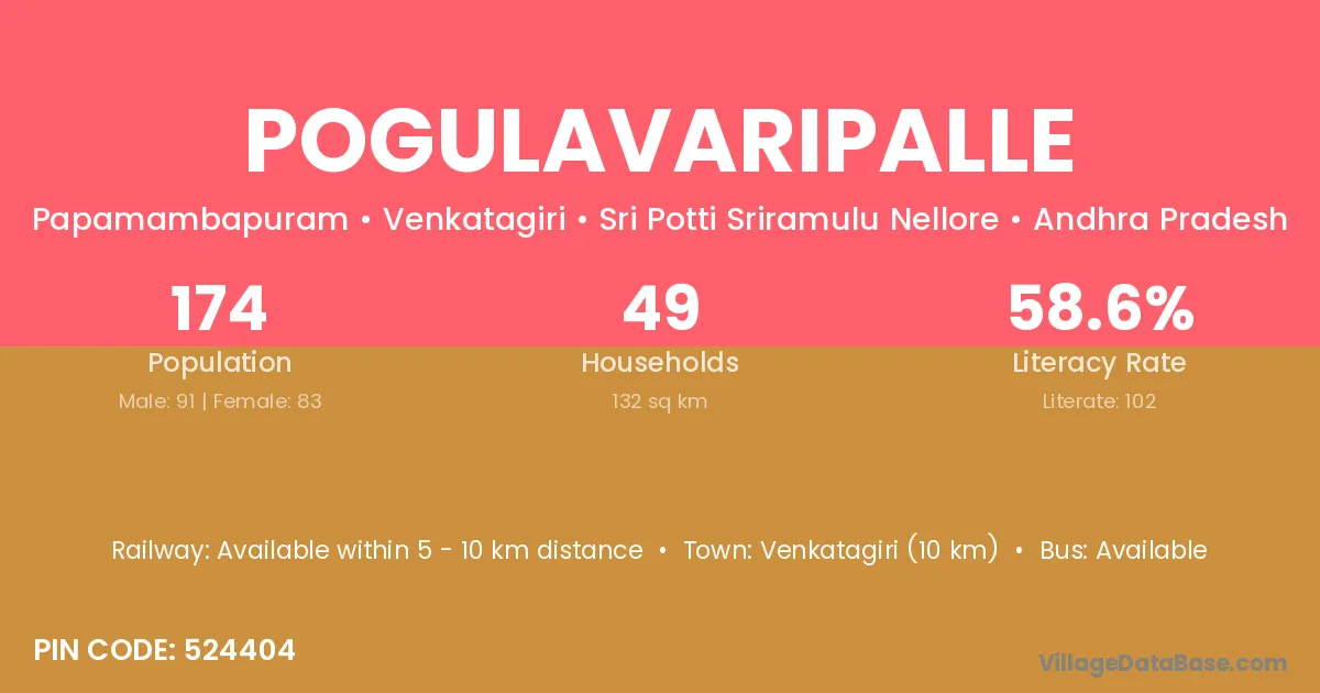 According to Census 2011 information, the village code of Pogulavaripalle village is 524404.