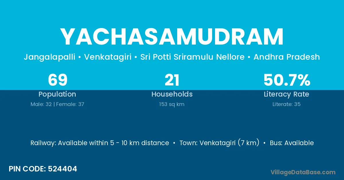 Yachasamudram village has a total population of 69 people, of which 32 are males and 37 are females.
