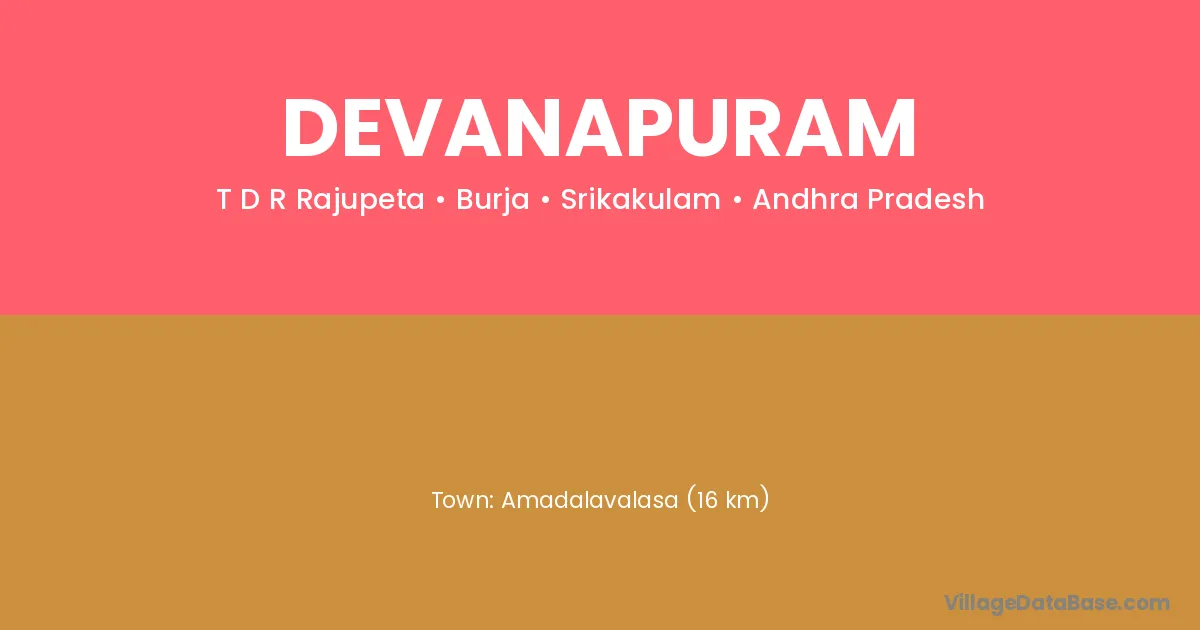 Amadalavalasa (16 km) is the nearest town to Devanapuram village for major economic activities and is located approximately 16 km away.