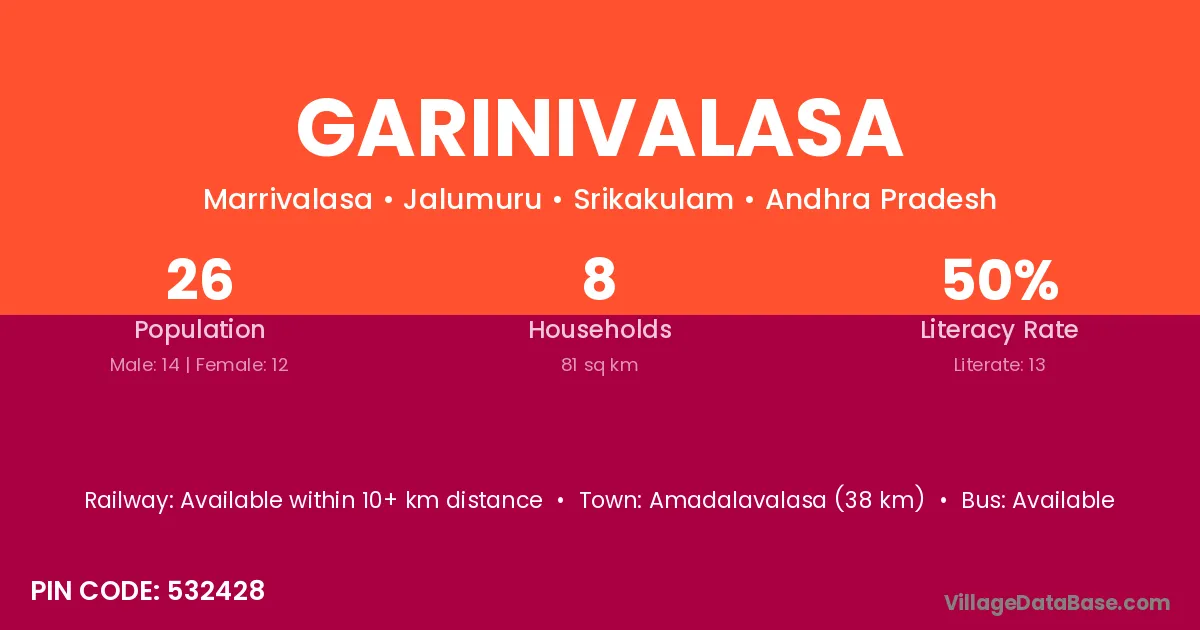 According to Census 2011 information, the village code of Garinivalasa village is 532428.