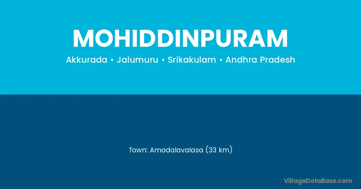 Amadalavalasa (33 km) is the nearest town to Mohiddinpuram village for major economic activities and is located approximately 33 km away.