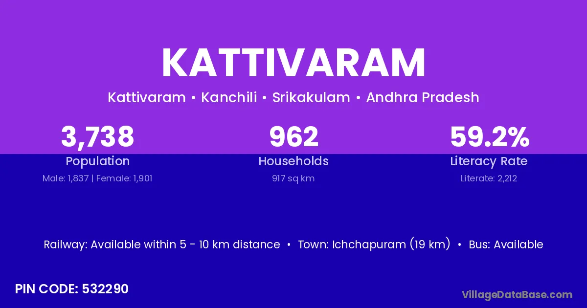 Ichchapuram (19 km) is the nearest town to Kattivaram village for major economic activities and is located approximately 19 km away.