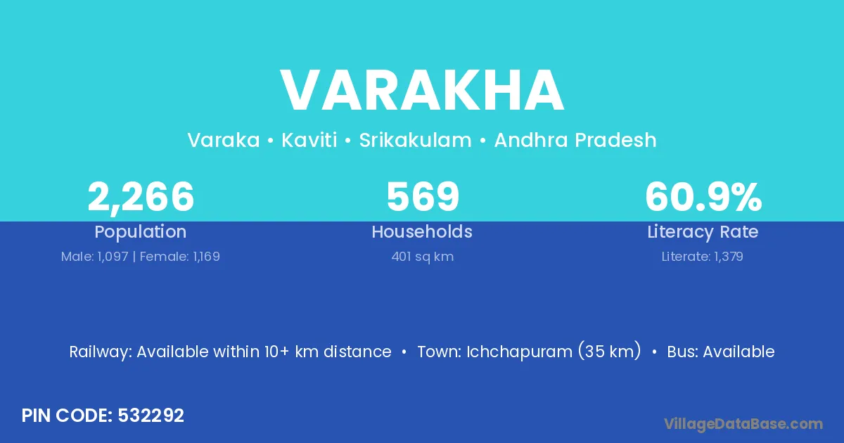 Ichchapuram (35 km) is the nearest town to Varakha village for major economic activities and is located approximately 35 km away.