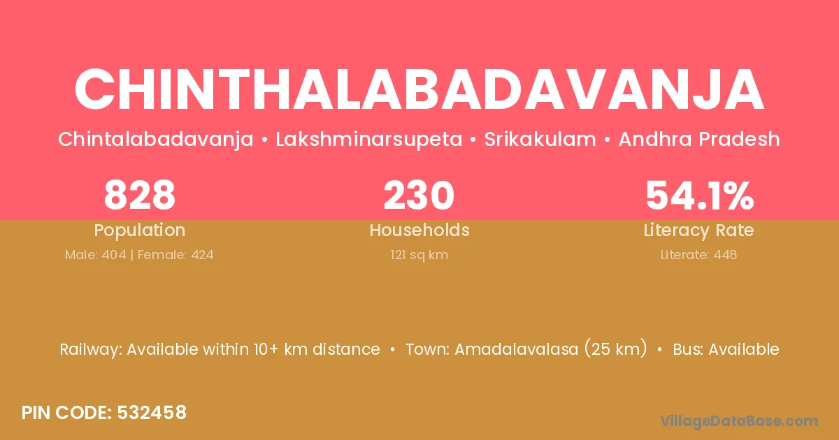 Amadalavalasa (25 km) is the nearest town to Chinthalabadavanja village for major economic activities and is located approximately 25 km away.