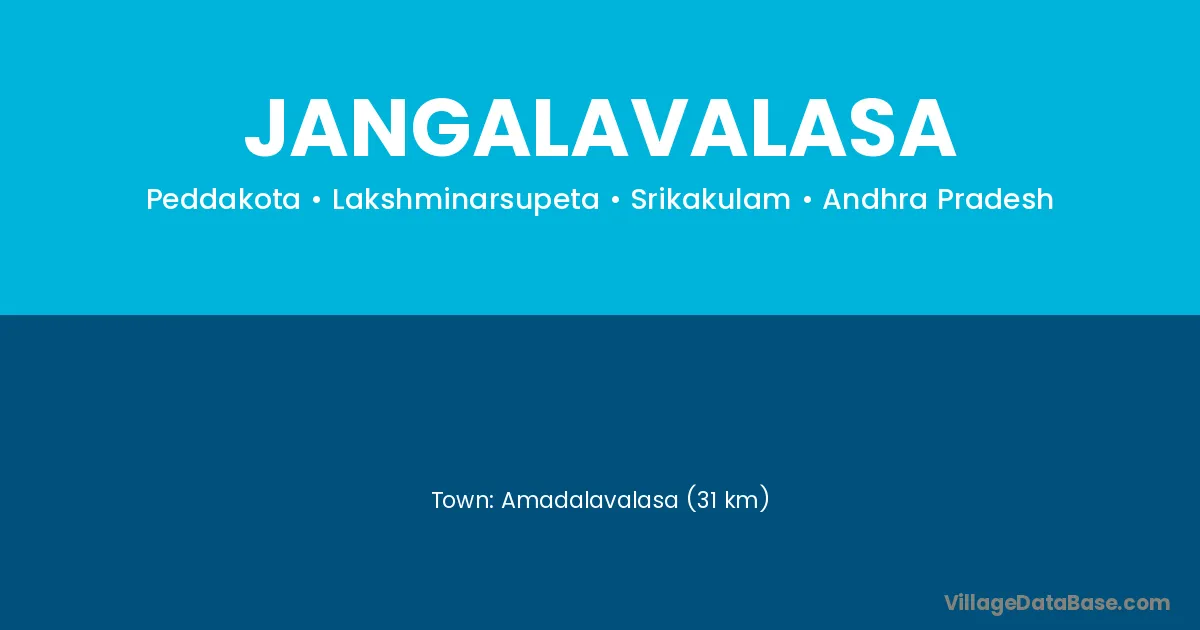 Amadalavalasa (31 km) is the nearest town to Jangalavalasa village for major economic activities and is located approximately 31 km away.