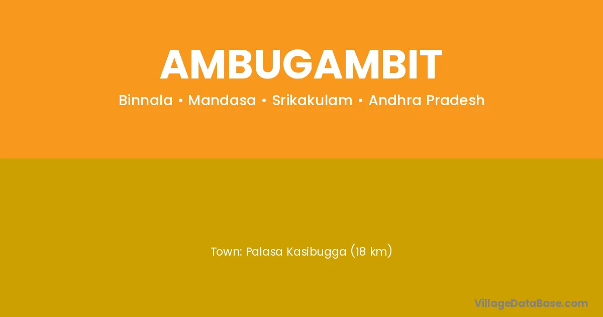 Palasa Kasibugga (18 km) is the nearest town to Ambugambit village for major economic activities and is located approximately 18 km away.