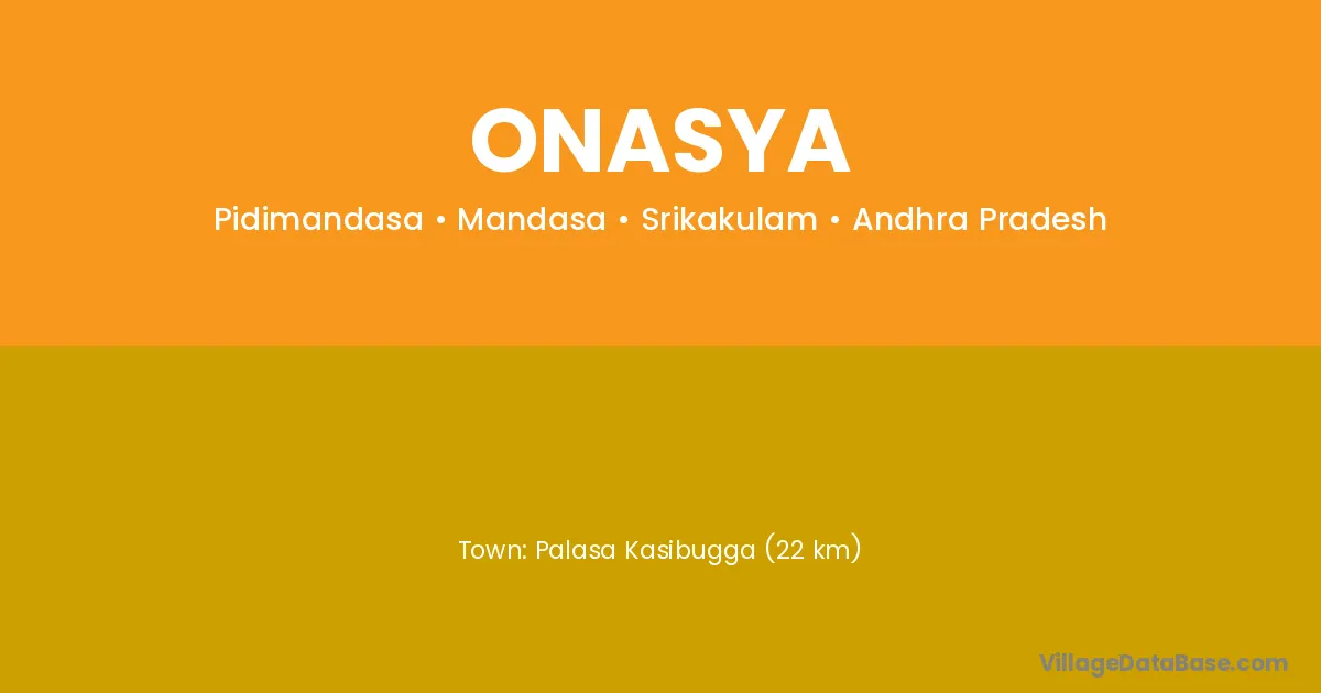 Palasa Kasibugga (22 km) is the nearest town to Onasya village for major economic activities and is located approximately 22 km away.