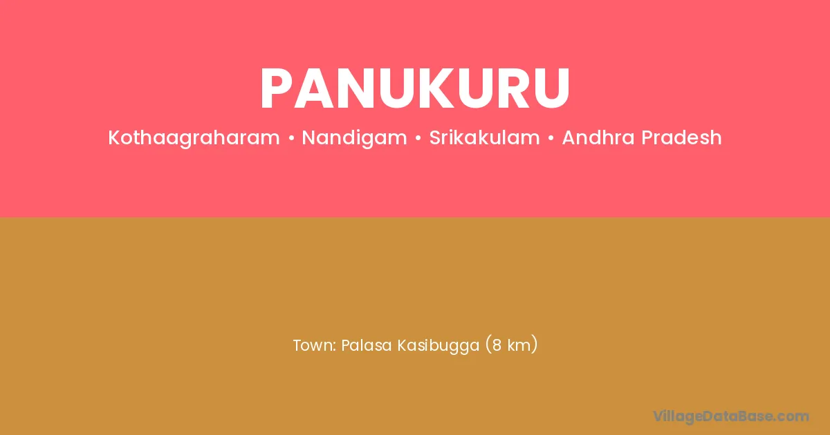 Palasa Kasibugga (8 km) is the nearest town to Panukuru village for major economic activities and is located approximately 8 km away.