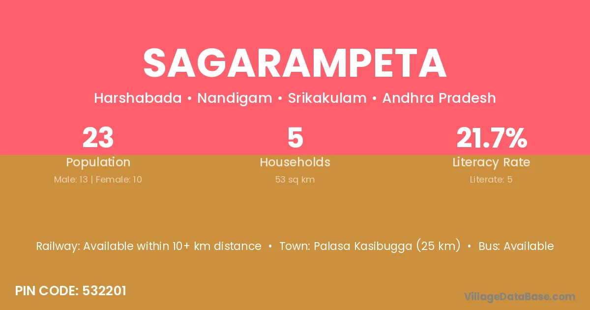 Sagarampeta village has a total population of 23 people, of which 13 are males and 10 are females.