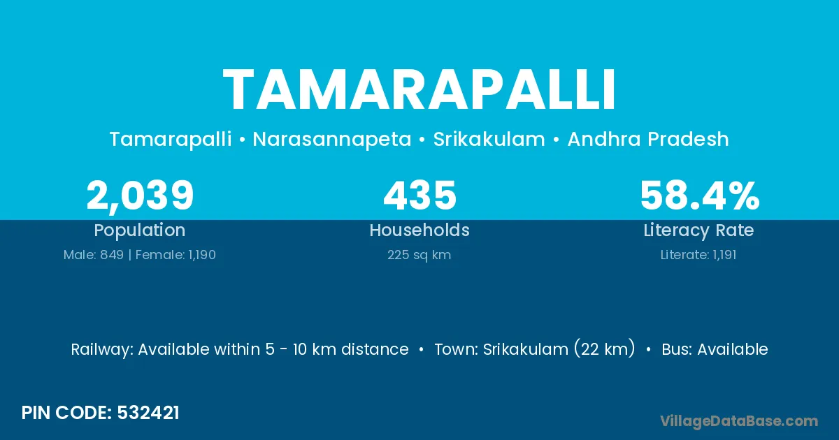 According to Census 2011 information, the village code of Tamarapalli village is 532421.