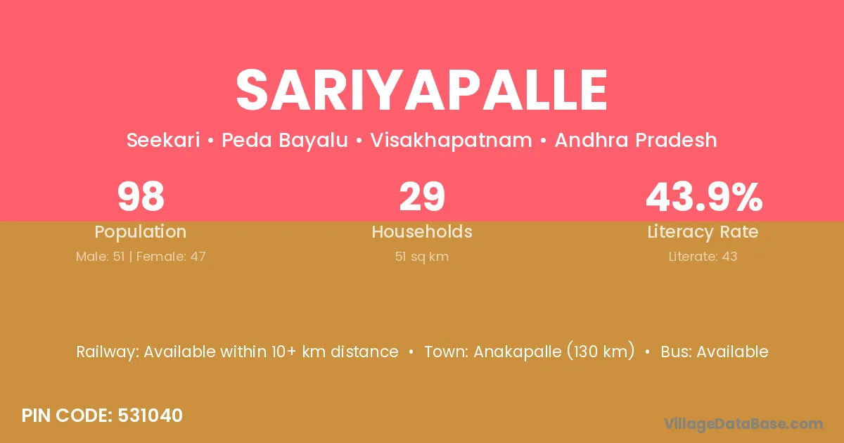 According to Census 2011 information, the village code of Sariyapalle village is 532222.