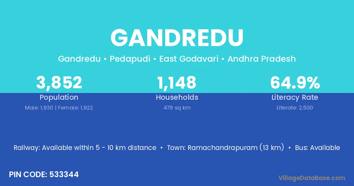 The literacy rate of Gandredu village is 58.24%. Male literacy stands at 66.67% and female literacy at 50.29%.