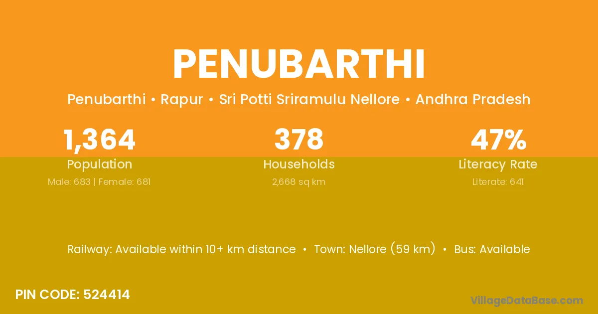 The literacy rate of Penubarthi village is 51.29%. Male literacy stands at 61.00% and female literacy at 41.89%.