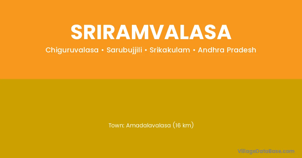 Amadalavalasa (16 km) is the nearest town to Sriramvalasa village for major economic activities and is located approximately 16 km away.