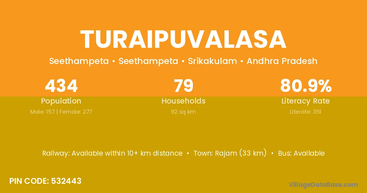 According to Census 2011 information, the village code of Turaipuvalasa village is 532443.