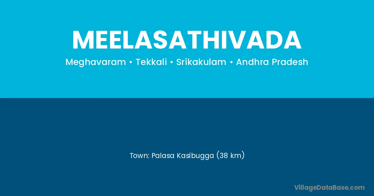 Palasa Kasibugga (38 km) is the nearest town to Meelasathivada village for major economic activities and is located approximately 38 km away.