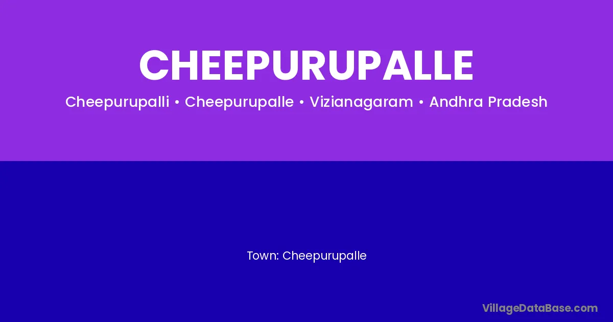 Palasa Kasibugga (12 km) is the nearest town to Cheepurupalle village for major economic activities and is located approximately 12 km away.