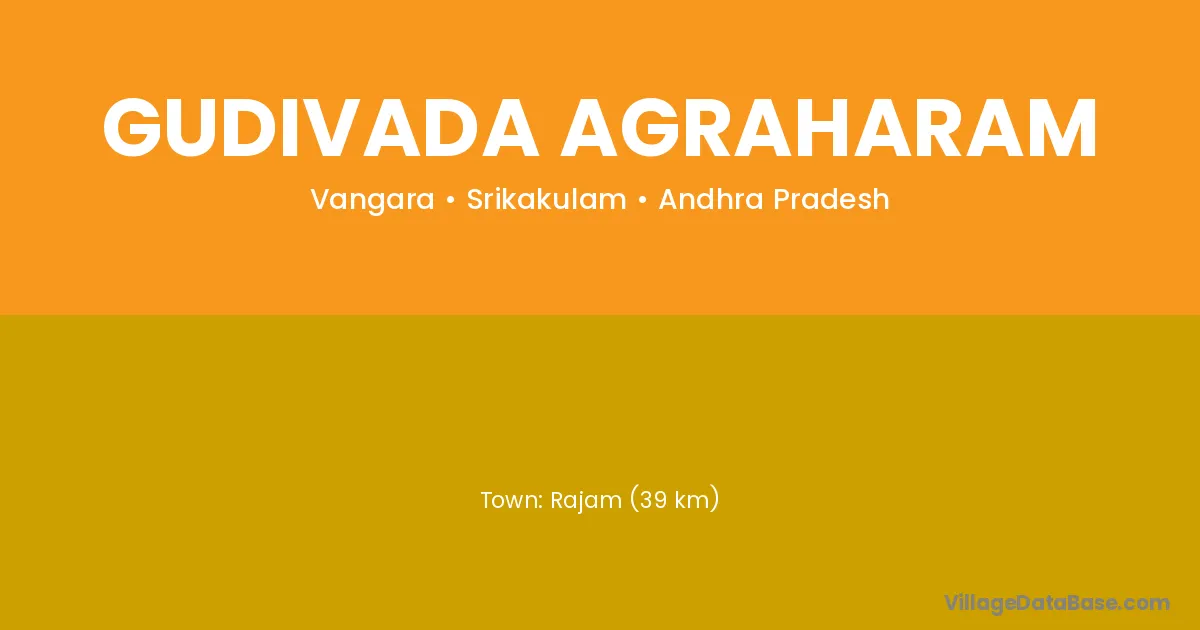 Rajam (39 km) is the nearest town to Gudivada Agraharam village for major economic activities and is located approximately 39 km away.