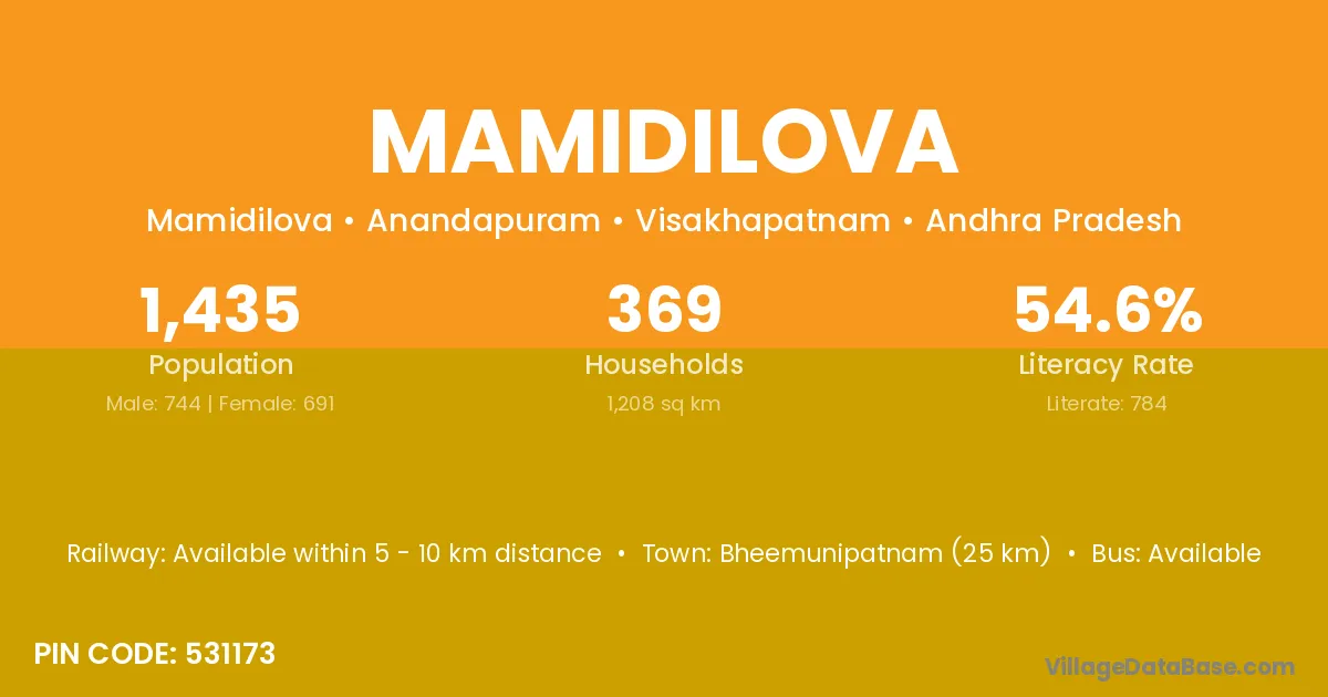 Mamidilova village has a total population of 1,435 people, of which 744 are males and 691 are females.