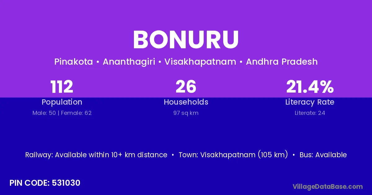 Bonuru village has a total population of 112 people, of which 50 are males and 62 are females.