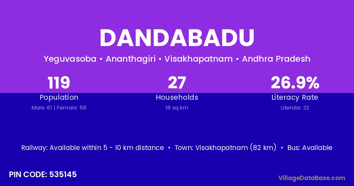 Dandabadu village has a total population of 119 people, of which 61 are males and 58 are females.