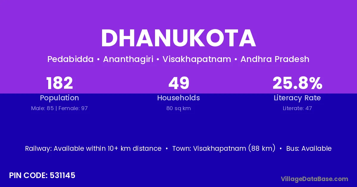 According to Census 2011 information, the village code of Dhanukota village is 531145.