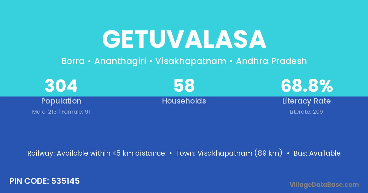 According to Census 2011 information, the village code of Getuvalasa village is 535145.