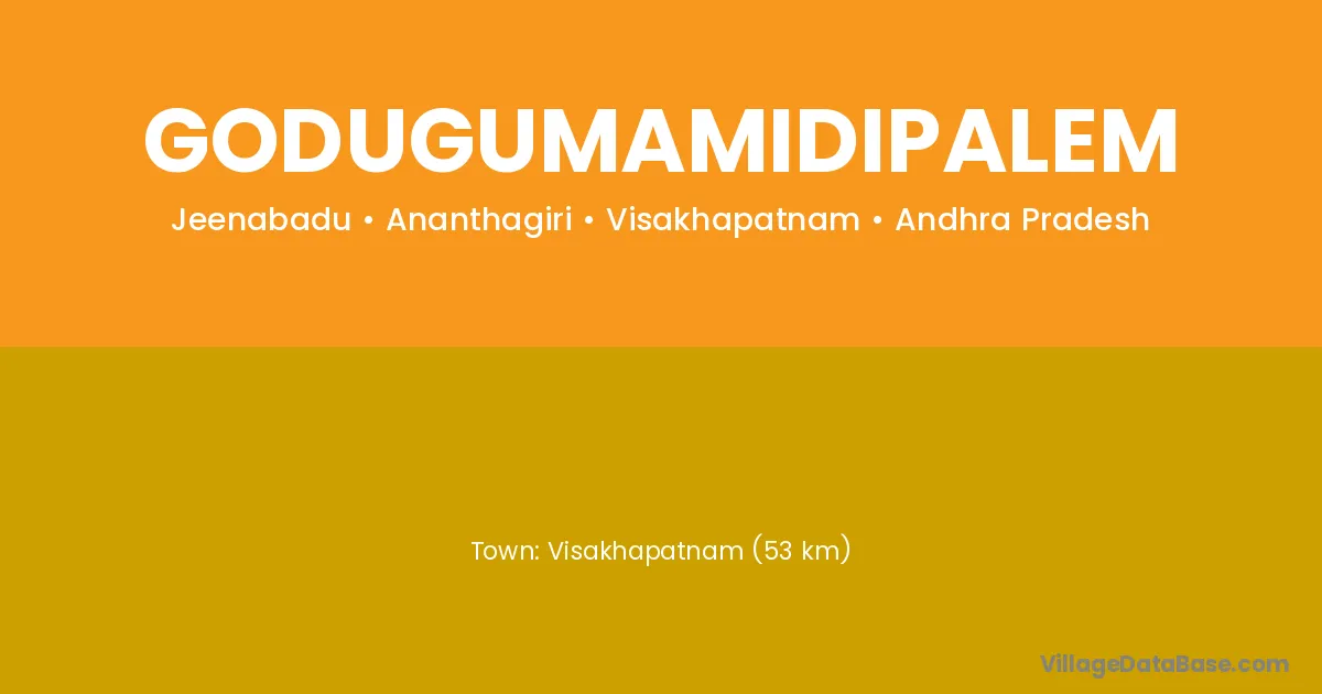 Visakhapatnam (53 km) is the nearest town to Godugumamidipalem village for major economic activities and is located approximately 53 km away.