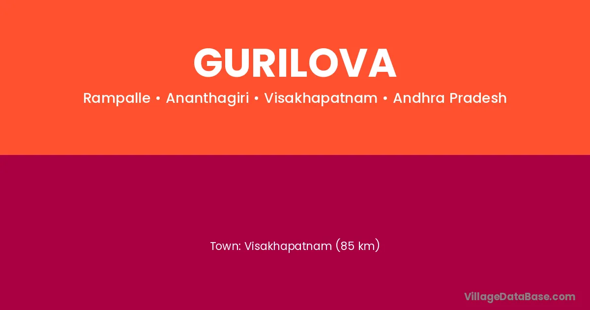 Visakhapatnam (85 km) is the nearest town to Gurilova village for major economic activities and is located approximately 85 km away.