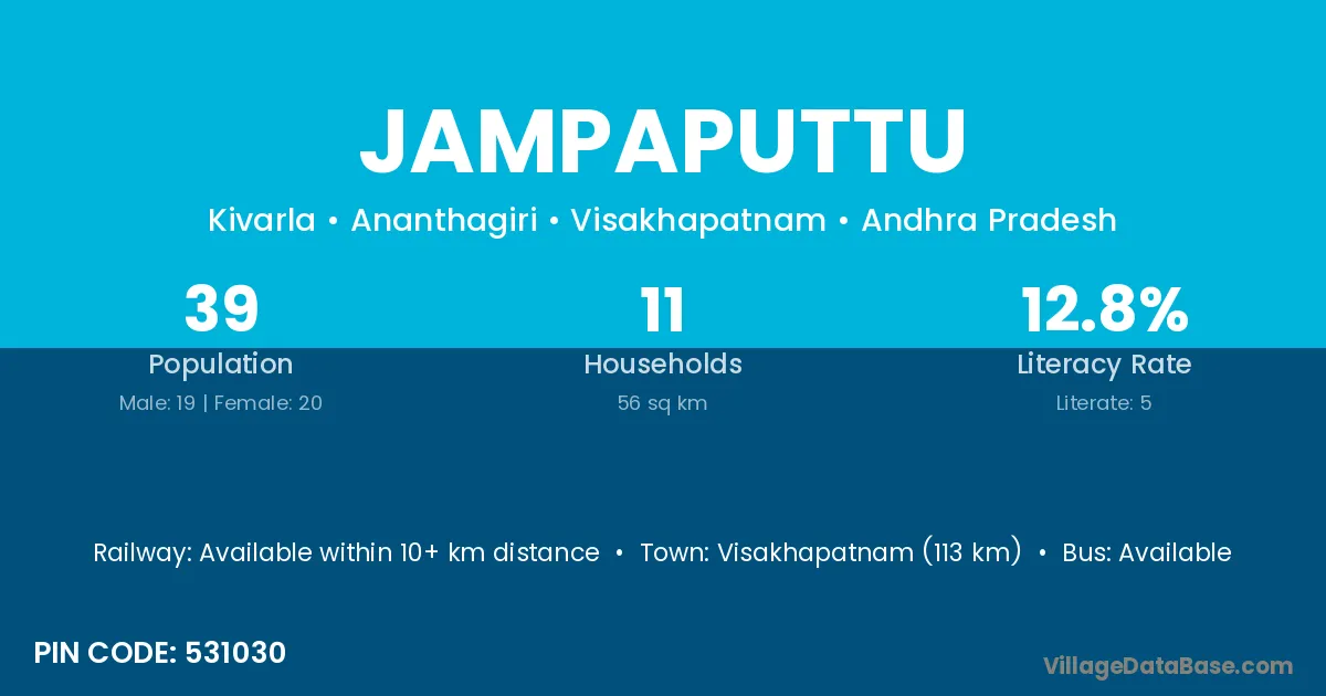 Jampaputtu village has a total population of 39 people, of which 19 are males and 20 are females.