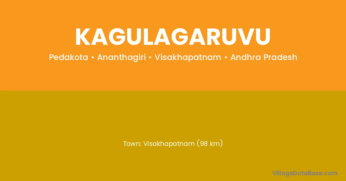 Visakhapatnam (98 km) is the nearest town to Kagulagaruvu village for major economic activities and is located approximately 98 km away.
