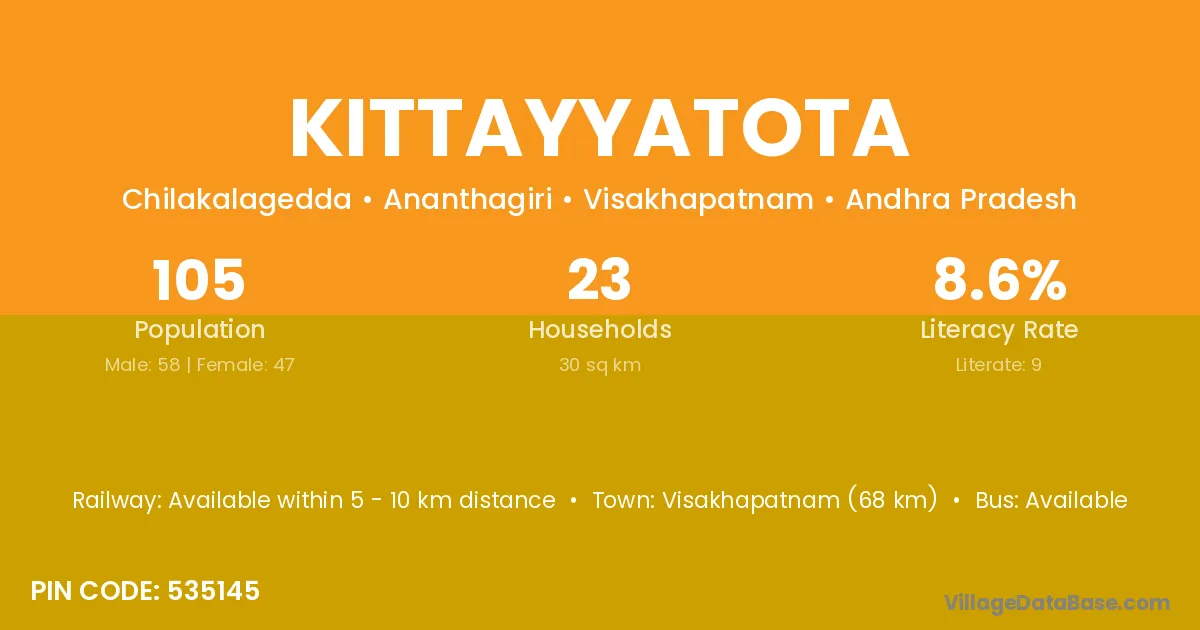 Kittayyatota village has a total population of 105 people, of which 58 are males and 47 are females.