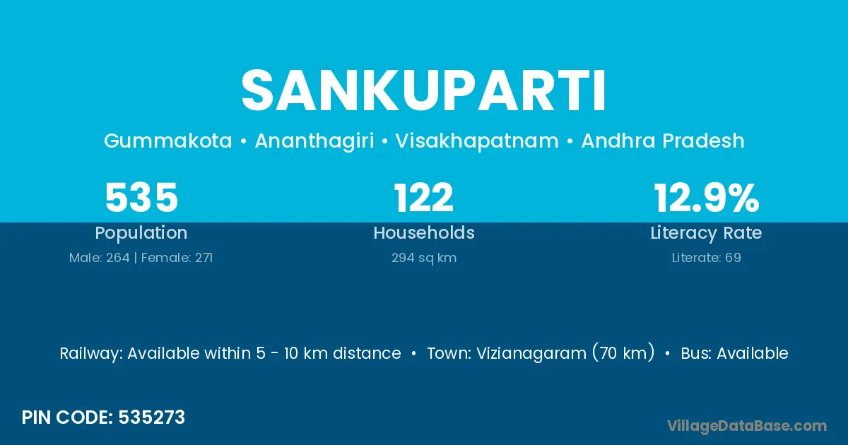 Sankuparti village has a total population of 535 people, of which 264 are males and 271 are females.