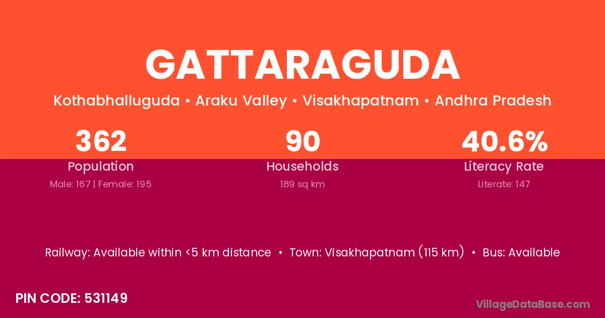 Gattaraguda village has a total population of 362 people, of which 167 are males and 195 are females.