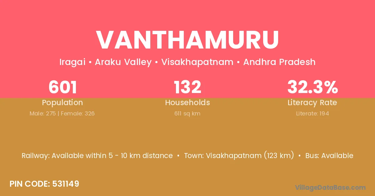 Vanthamuru village has a total population of 601 people, of which 275 are males and 326 are females.