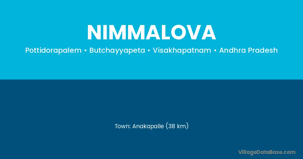 Anakapalle (38 km) is the nearest town to Nimmalova village for major economic activities and is located approximately 38 km away.