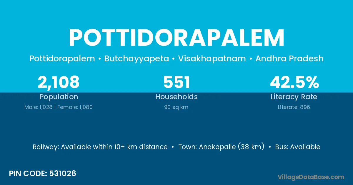 According to Census 2011 information, the village code of Pottidorapalem village is 531026.