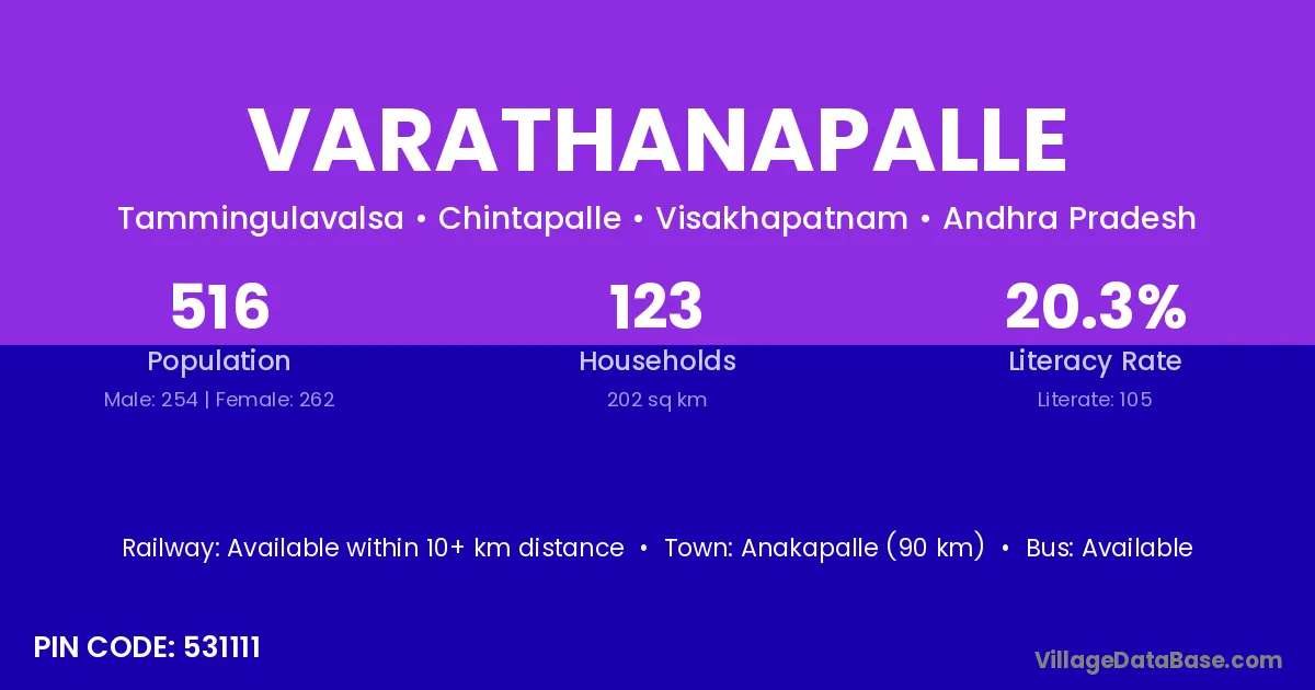 Varathanapalle village has a total population of 516 people, of which 254 are males and 262 are females.
