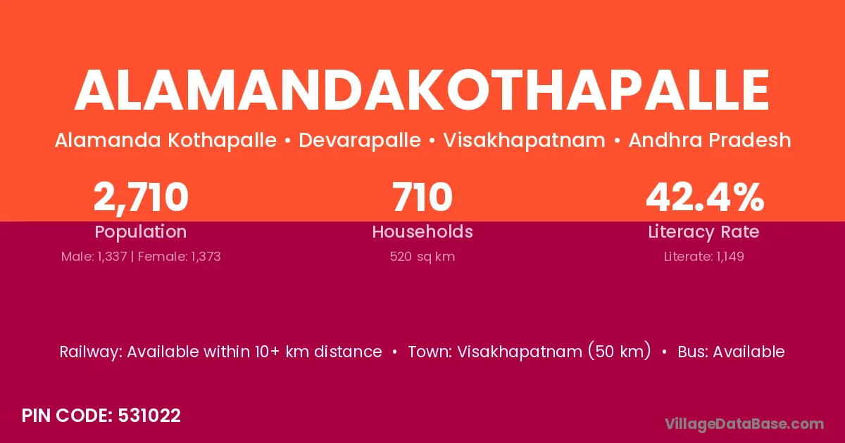 According to Census 2011 information, the village code of Alamandakothapalle village is 531022.