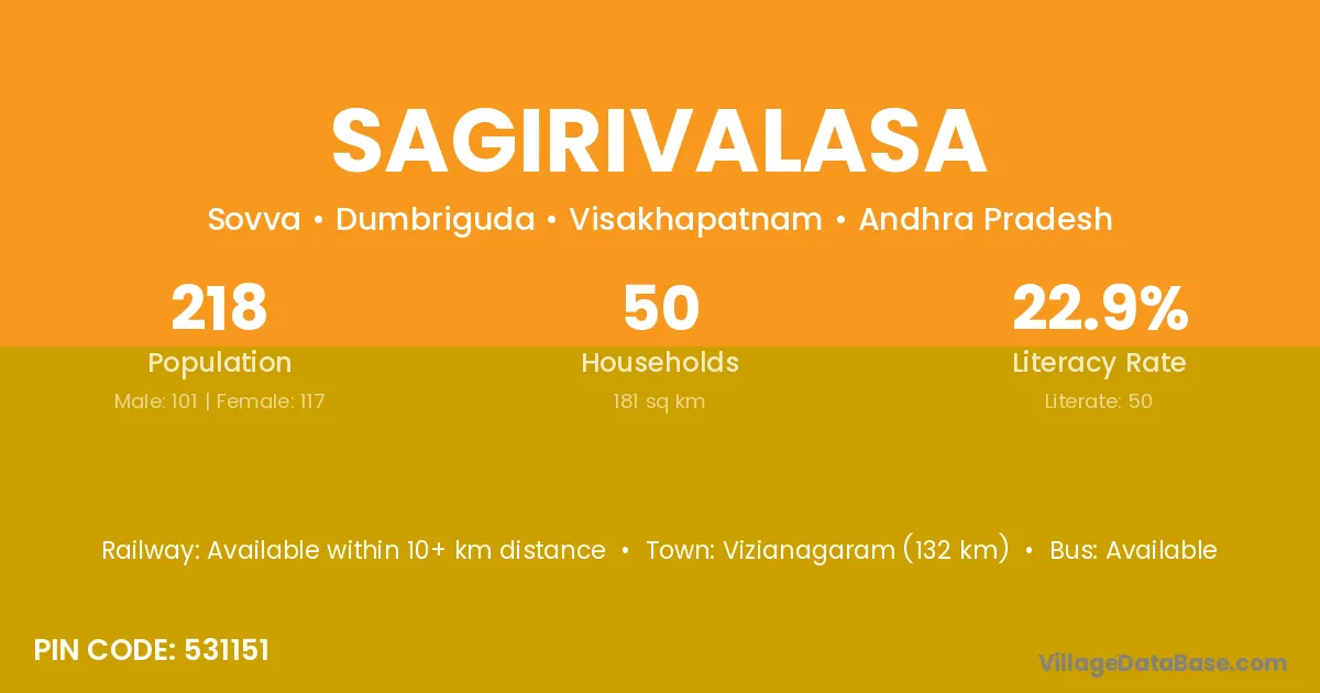 Sagirivalasa village has a total population of 218 people, of which 101 are males and 117 are females.