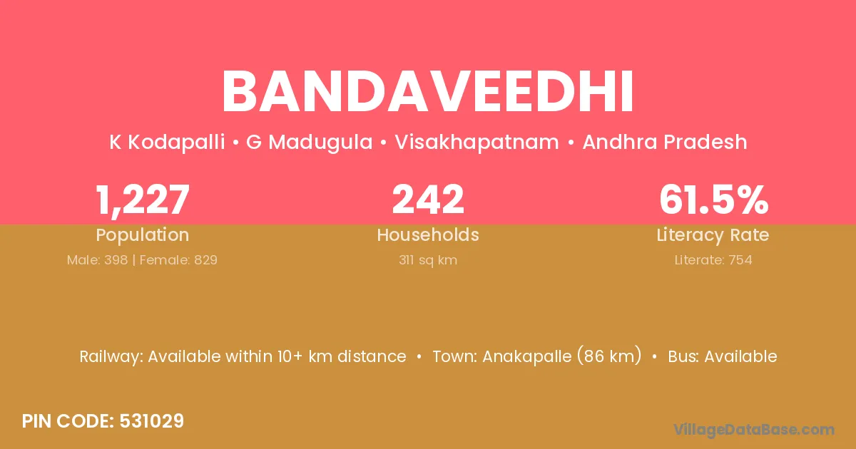 According to Census 2011 information, the village code of Bandaveedhi village is 531029.