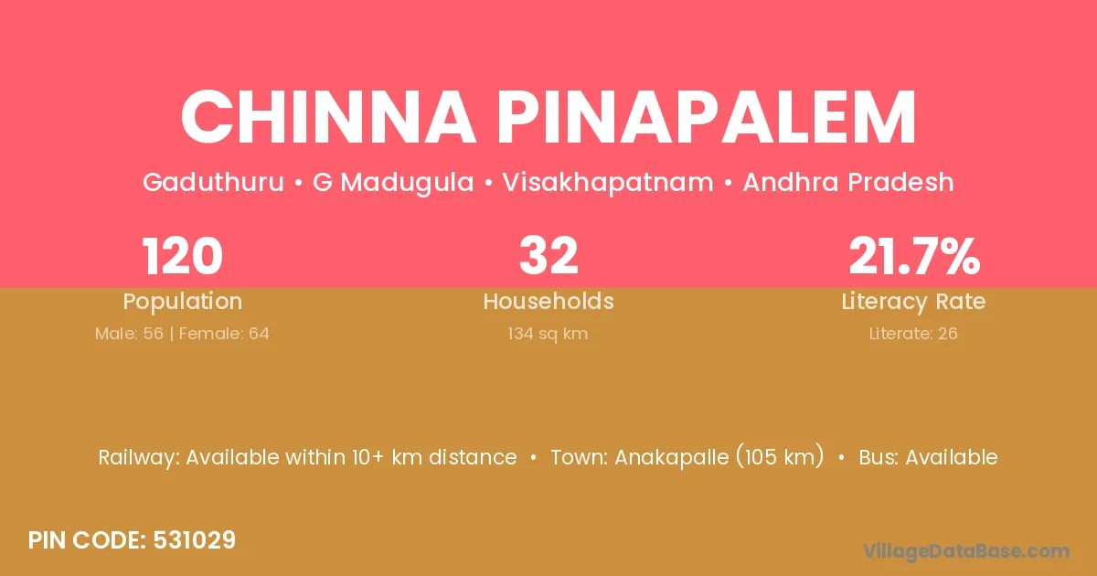 Chinna Pinapalem village has a total population of 120 people, of which 56 are males and 64 are females.