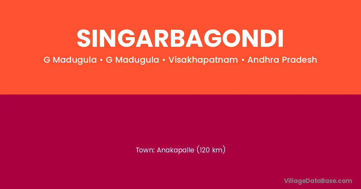 Anakapalle (120 km) is the nearest town to Singarbagondi village for major economic activities and is located approximately 120 km away.