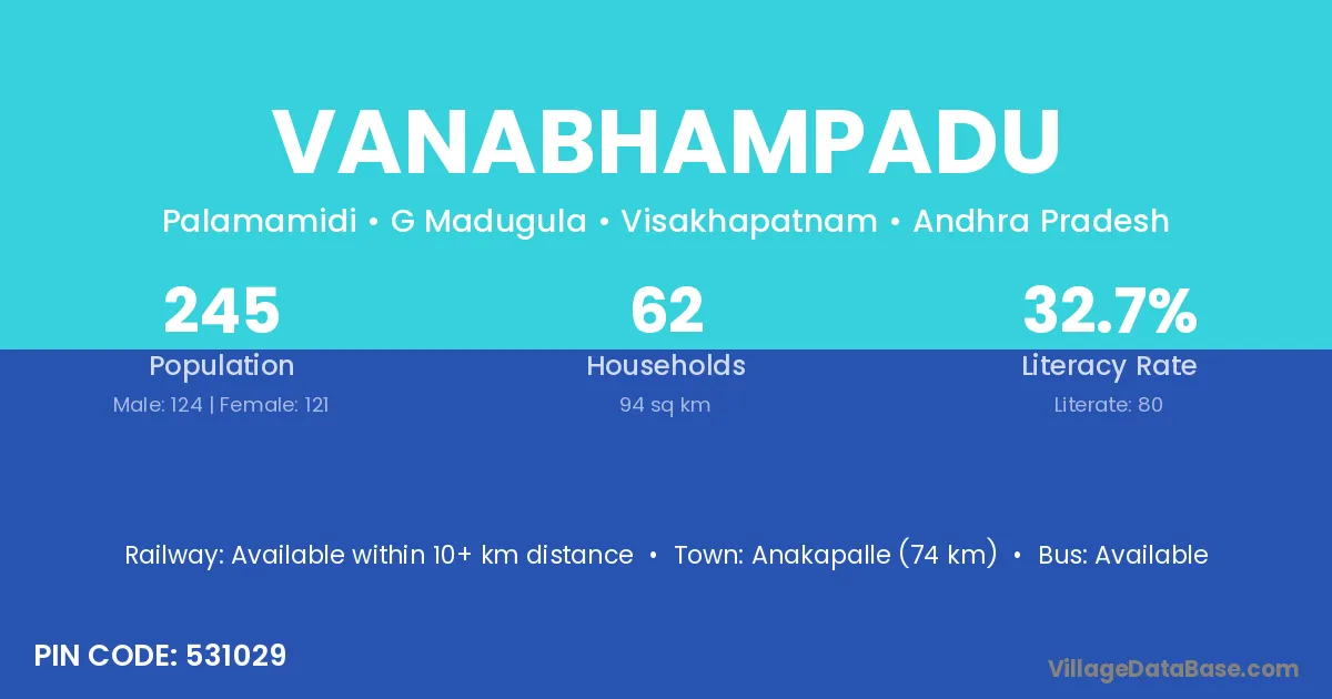 Vanabhampadu village has a total population of 245 people, of which 124 are males and 121 are females.